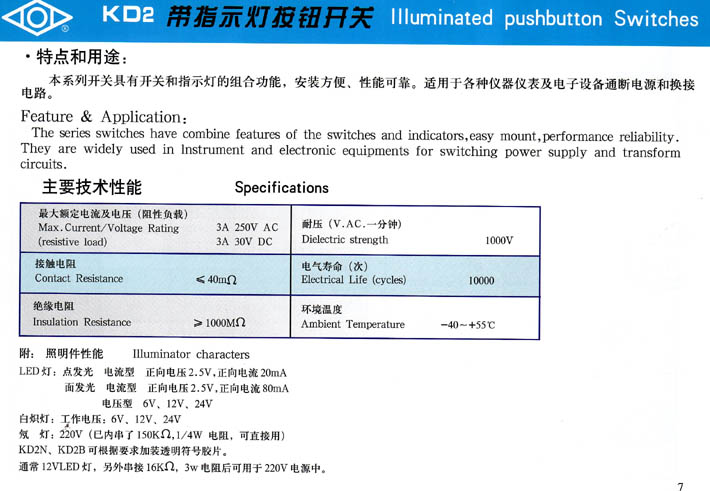 - 當前位置:首頁 > 開關(guān)系列 > KD系列帶燈按鈕開關(guān)