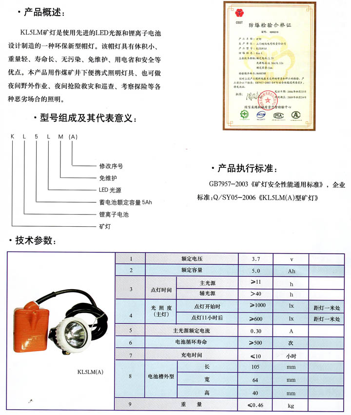 • KL5ML(A)型礦燈 產(chǎn)品型號:KL5ML(A)型礦燈